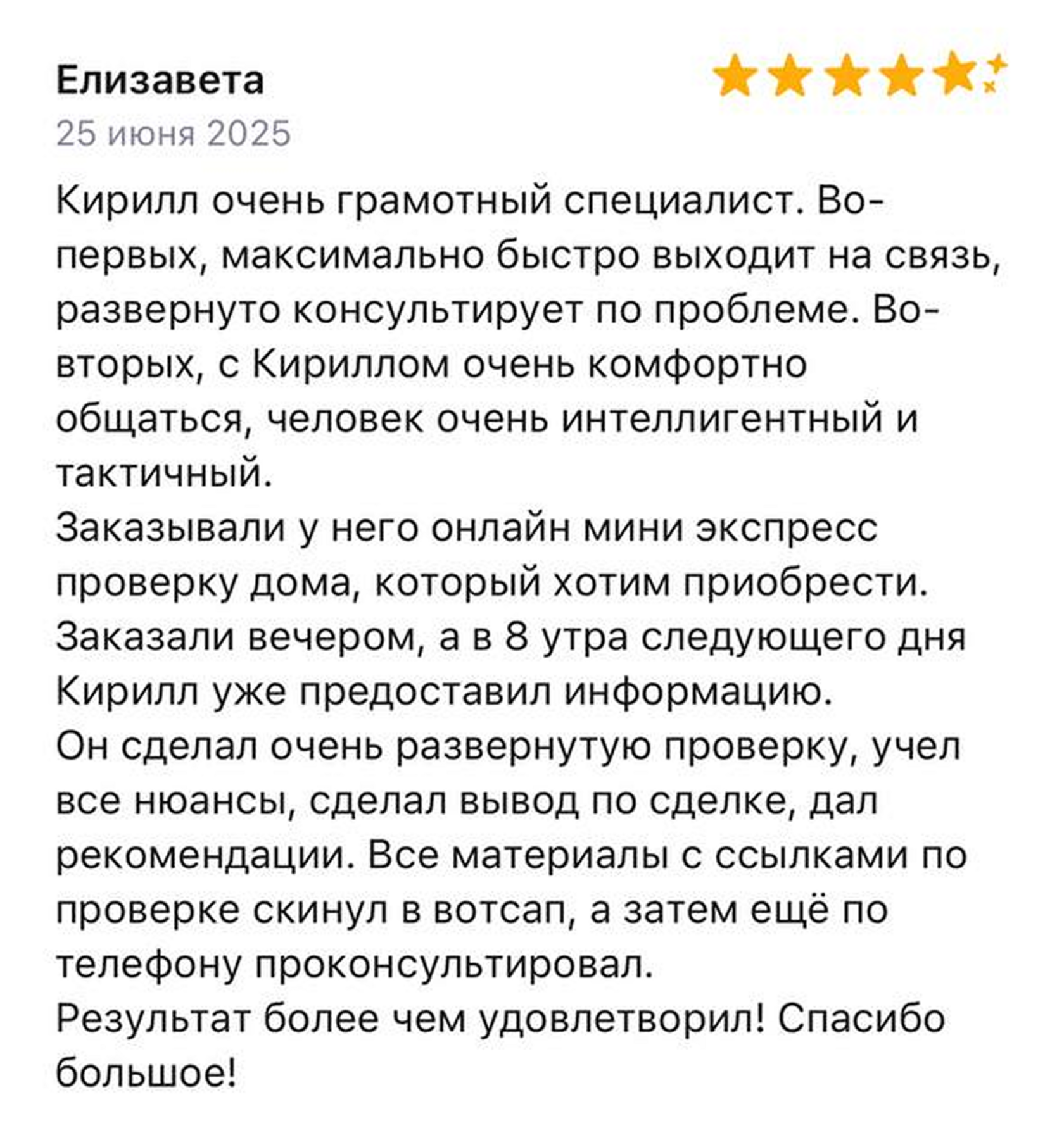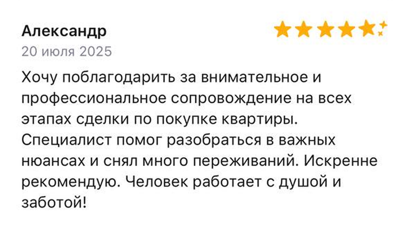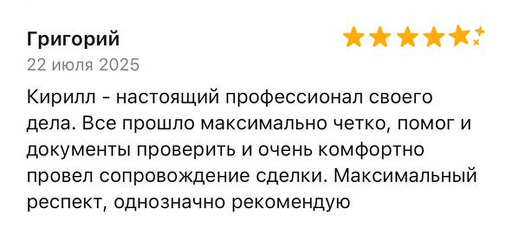 Сделка закрыта в срок. Актив передан без скрытых проблем и рисков.